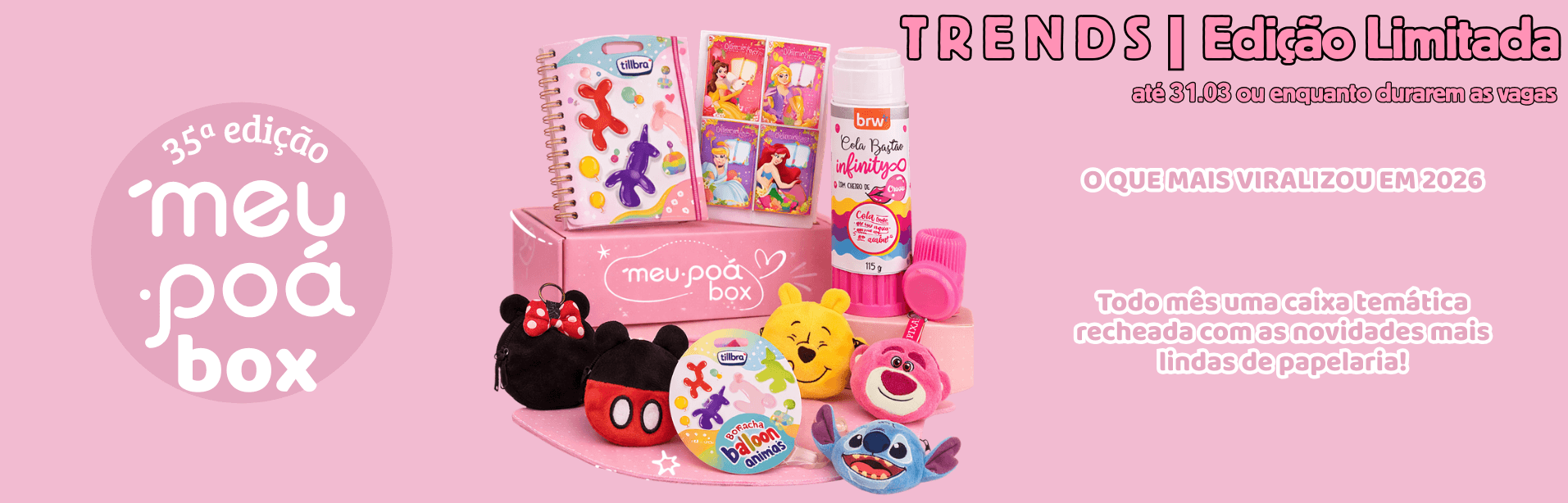 Uma caixinha nova e temática todo mês com os produtos mais fofos de papelaria!